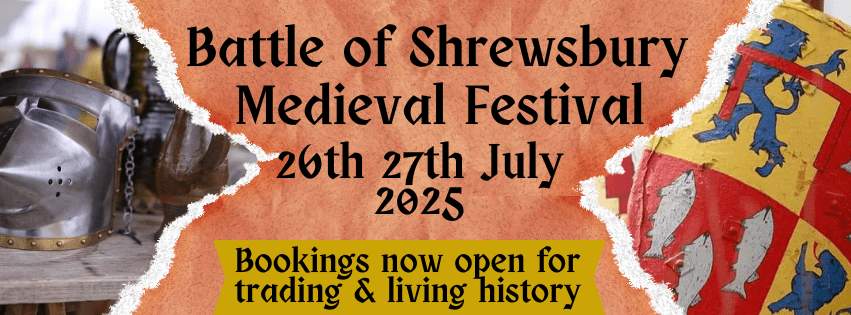 After generous donations and support from a number of reenactment groups who have helped fundraise for this years Battle of Shrewsbury ensuring that it is free entry for all to enjoy is happening on 26th and 27th July 2025.